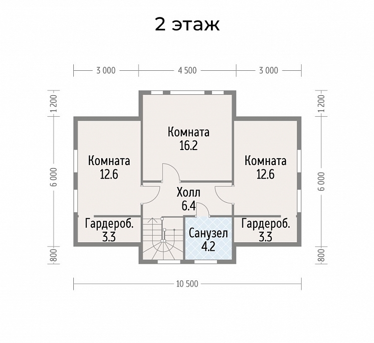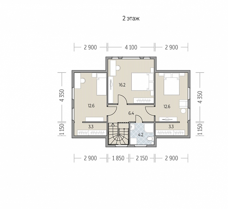 Высота потолков: первый этаж − 2,6 м; второй этаж − 2,5 м